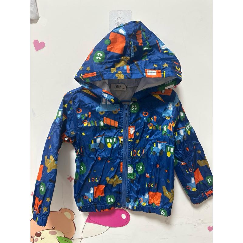 滿版車車深藍色連帽男童外套/車車世界/5碼90公分穿/防風外套/連帽外套