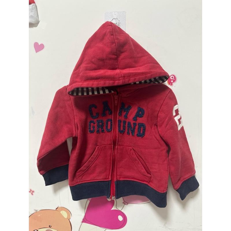 90-100公分寶寶穿/深紅色英文刷絨保暖兒童連帽外套