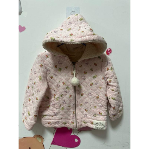粉色花朵刷絨鋪棉連帽90公分女童外套/保暖外套