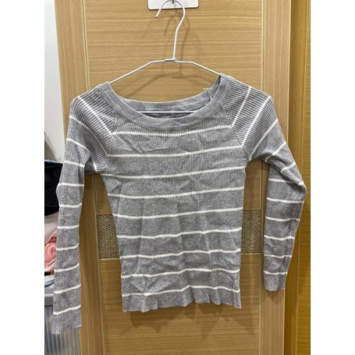 灰色條紋一字領針織坦克紋短版上衣/保暖上衣/灰色顯瘦可愛超舒適/內裡/內搭