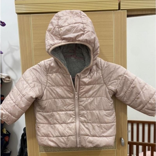 童裝/NET連帽粉色雪花鋪棉保暖外套100碼