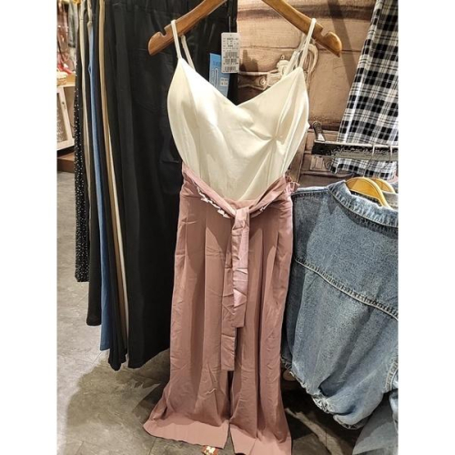 全新細肩帶拼接雪紡連身長褲 連身褲 拉鍊 細肩帶 胸墊