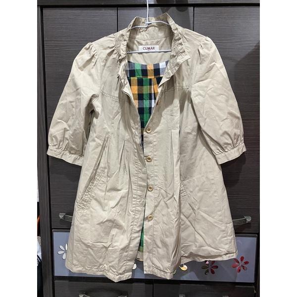 CUMAR 格紋內裡卡其色素色七分袖風衣外套/時尚/顯瘦/罩衫