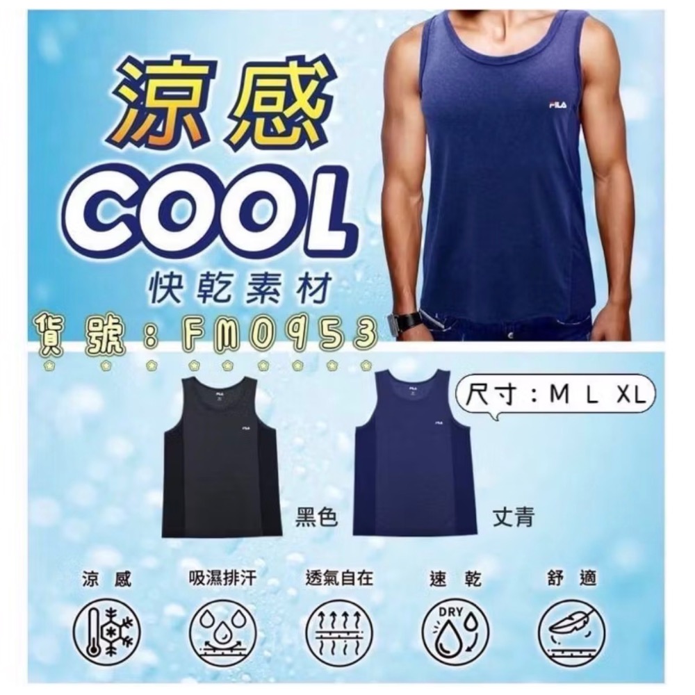 FILA男涼感圓領背心 男涼感吸排拼接圓領背心