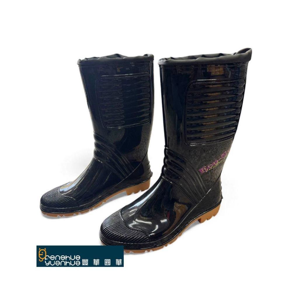 《 豐華圓華 》【百振江】雨鞋 工作雨鞋 加長雨鞋 黑色車皮