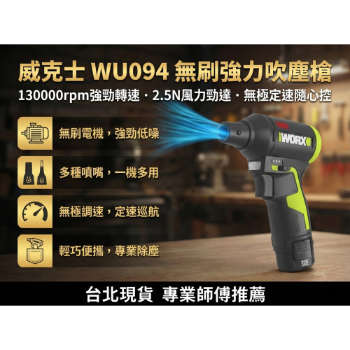 台灣現貨 威克士 WORX WU094 無刷吹塵槍 12V WU093