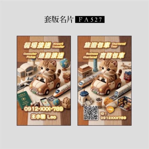 FA527專屬套版名片.計程車.機場接送.多元計程車.毛絨絨系列.可愛小貓名片
