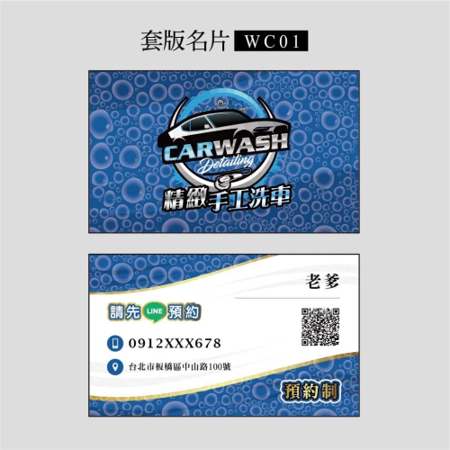 WC01~WC09套版名片.名片設計.精緻洗車.手工洗車.汽車美容.個人洗車.預約洗車.預約制.洗車美容.WC