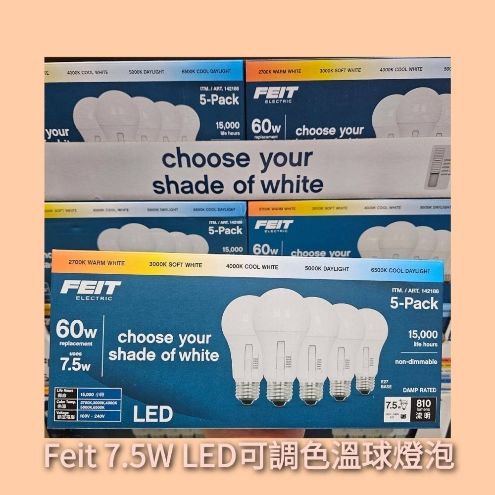 • 🍊商品:Feit 7.5W LED可調色溫球燈泡 5入