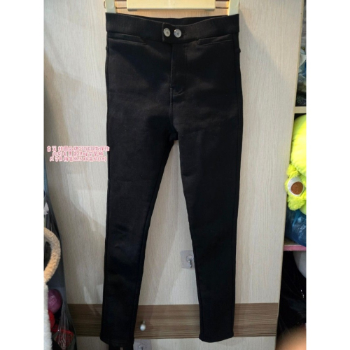古著 韓國品牌D'STUDIO微彈性 內刷毛黑色保暖窄管褲 尺寸M 褲長88.5 胸寬31(cm)