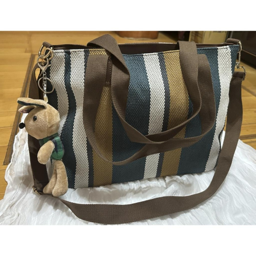 超大容量的編織撞色條紋氣質肩背包,