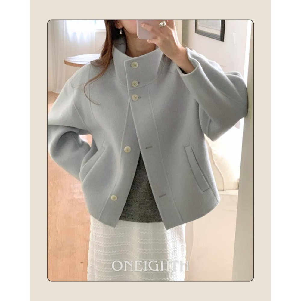 [25W1115]🇰🇷正韓空運(現貨)/韓國代購/秋冬新品/俐落高領翻領兩穿中短版手工羊毛大衣(三色)