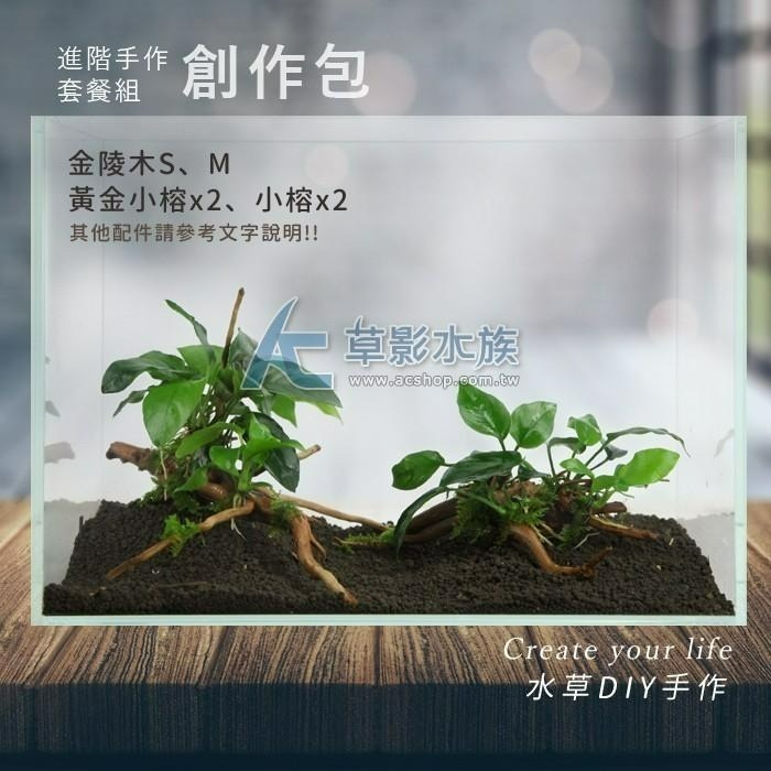 2. 草影資深水草設計師特別挑選的金陵木,支支有型,綑綁黃金小榕與小榕兩種不同色系葉片,更能發揮1+1大於2的效果,明顯的創造出空間感。