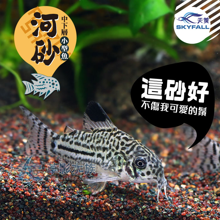 1. 中下層小型魚河砂,砂質極細不易劃傷魚身體、鬍鬚和嘴。