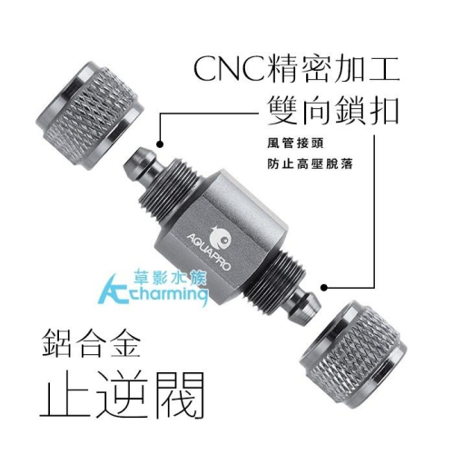 1. 鋁合金逆止閥,氣體只能單向通過,防止水回流進設備內,本產品僅用於CO2,打氣機壓力較低,可能無法使用。