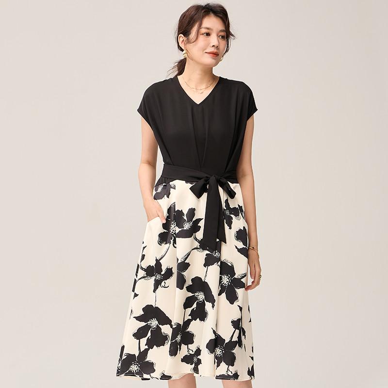 品牌:tuwk 風格:通勤 流行元素/工藝:拼接 腰型:高腰 材質:雪紡 袖型:常規 材質成分:聚酯纖維91.4% 聚氨酯彈性纖維(氨綸)8.6% 裙型:A字裙 貨號:TW23233 適用季節:夏季 款式:套裝 組合形式:單件 產地:中國 上市年份季節:2025年夏季 袖長:短袖 裙長:中長裙 廓形:A型 圖案:印花 衣門襟:套頭 尺碼:S,M,L,XL 顏色分類:黑色
