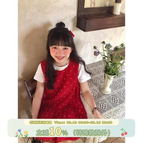 嘿山姥姥 紅色背心洋裝女春夏學院風小個子復古甜美可愛a字短裙