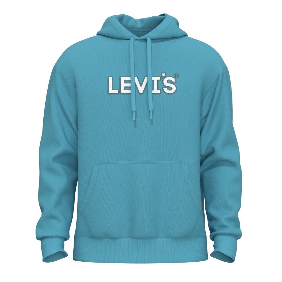 Levis 男款 口袋帽T 精工刺繡徽章海報體Logo 海洋藍 38479-0249