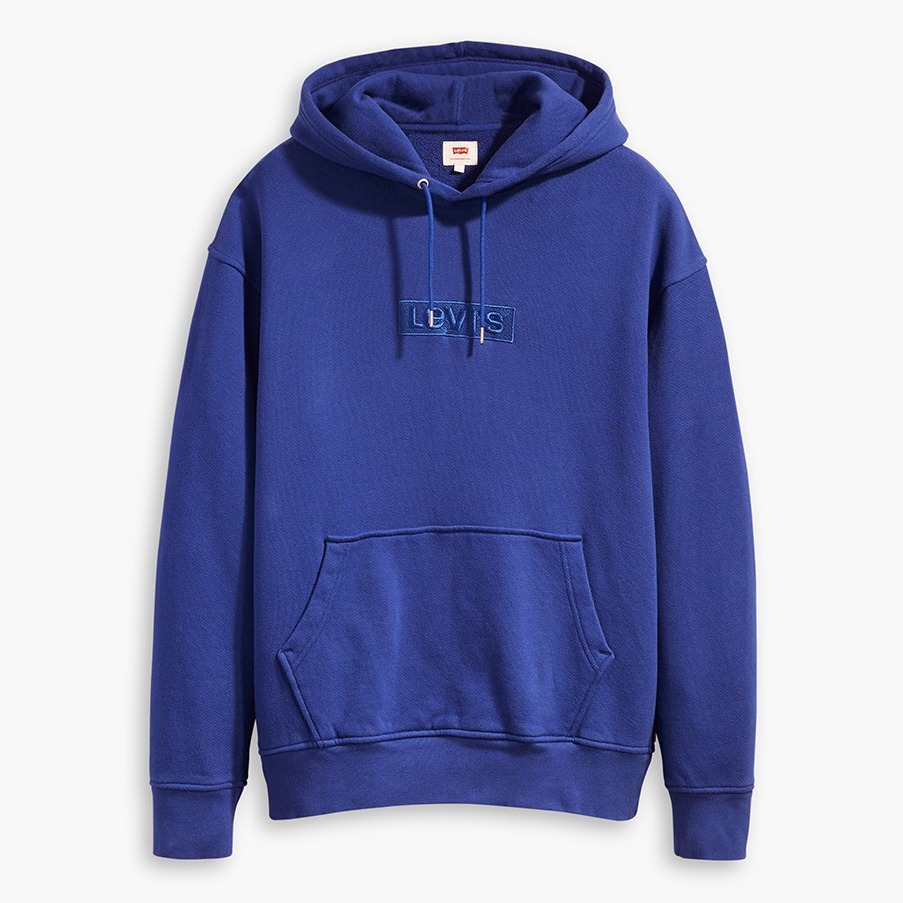Levis 男款 口袋帽T 率性藍全一色刺繡Logo 寶藍 72632-0013