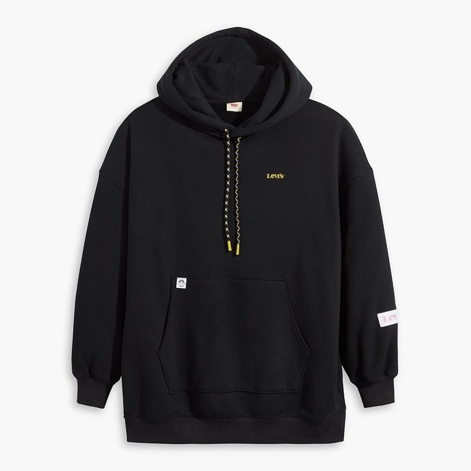 Levis 女款 長版口袋帽T 精工Logo刺繡 魚子黑 A0781-0000