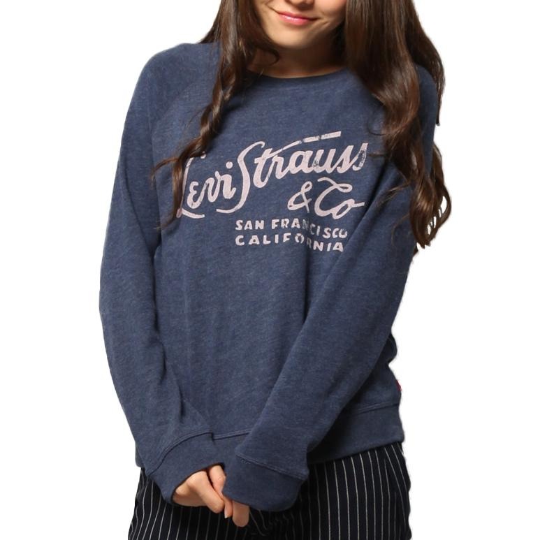Levis 女款 大學T 草寫Logo 深藍 17387-0016