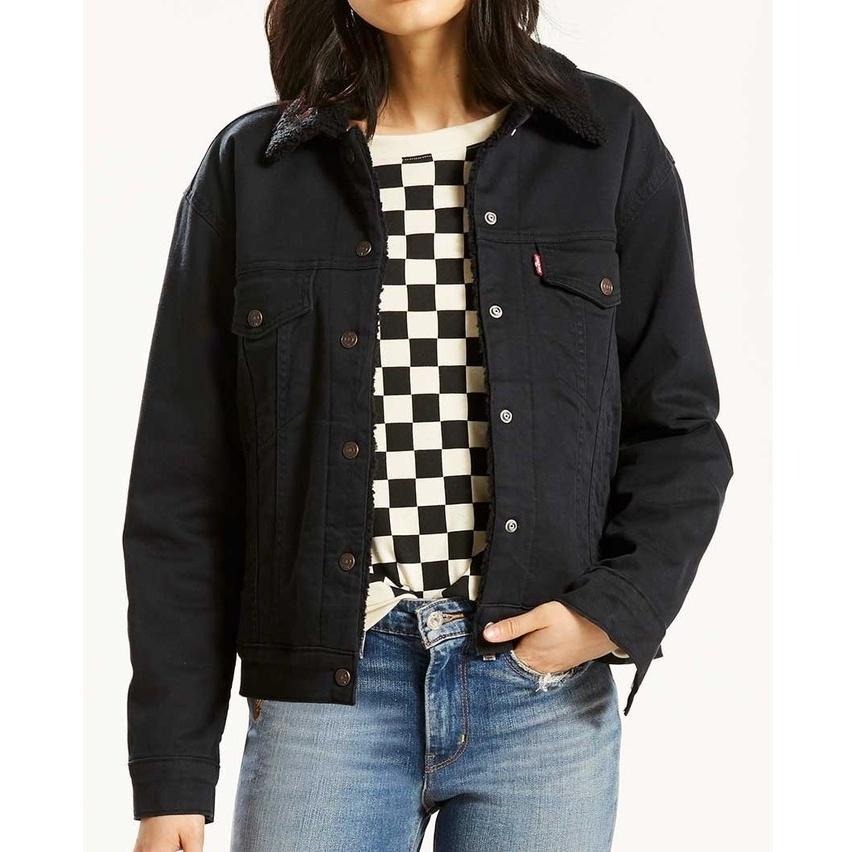 Levis 女款 牛仔外套 Sherpa棉花絨 黑丹寧 36137-0002