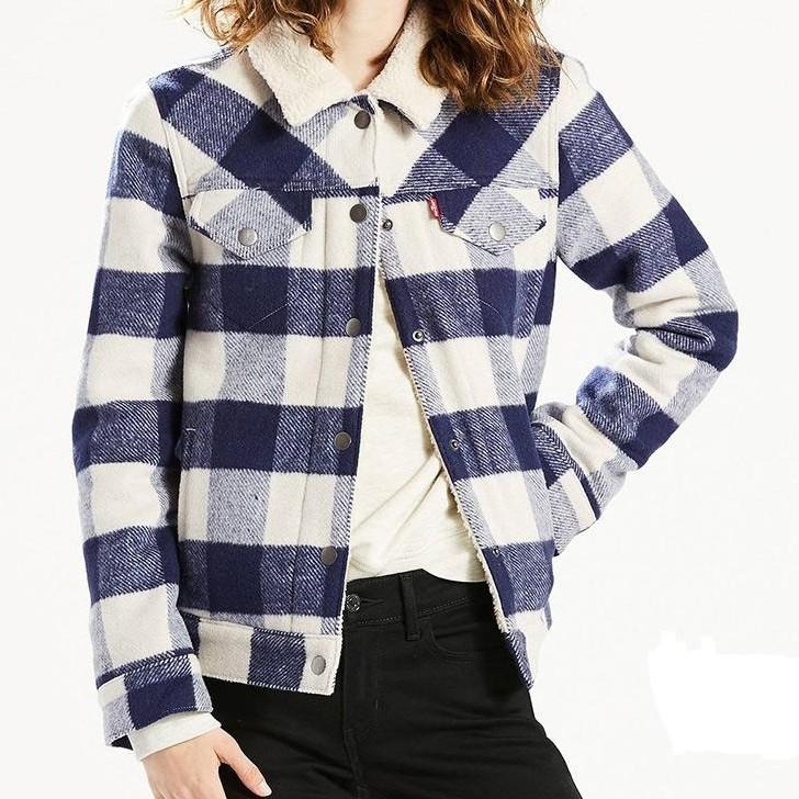 Levis 女款 羊毛外套 Sherpa棉花絨 羊毛藍白格紋 28209-0001