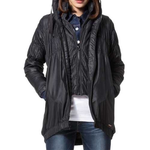 Levis 女款 長版大衣 風衣鋪棉外套 連帽外套 黑 71880-0002