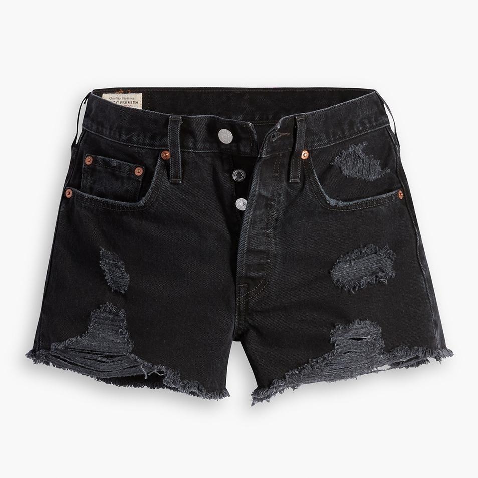 Levis 女款 501 排扣牛仔短褲 精工不規則黑魂刷破工藝 56327-0318