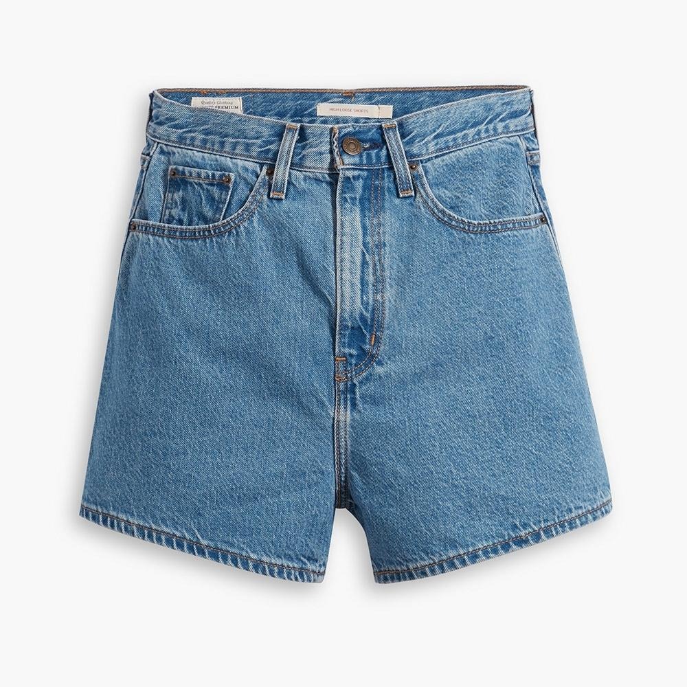 Levis 女款 復古超高腰牛仔闊腿短褲 精工中藍染水洗 39451-0002