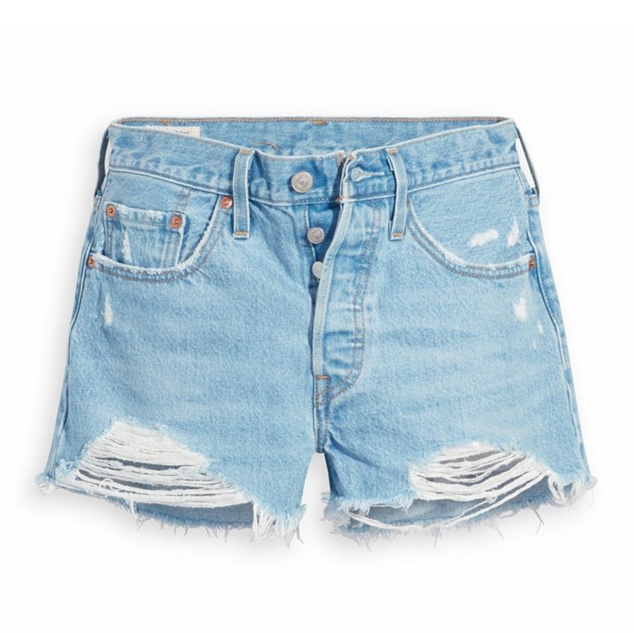 Levis 女款 501 排扣牛仔短褲 淺藍水洗 56327-0241
