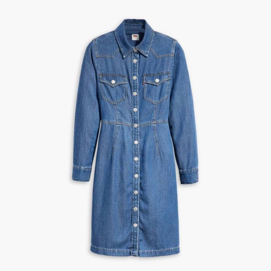Levis 女款 牛仔洋裝 襯衫式順腰設計 中藍水洗 A7565-0000