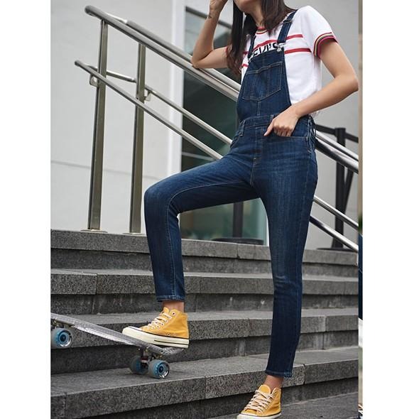 Levis 女款 吊帶長褲 緊身窄管 深藍水洗 58815-0000