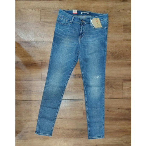 Levis 女款 711 緊身窄管牛仔褲 淺藍水洗 破壞補丁 19560-0154
