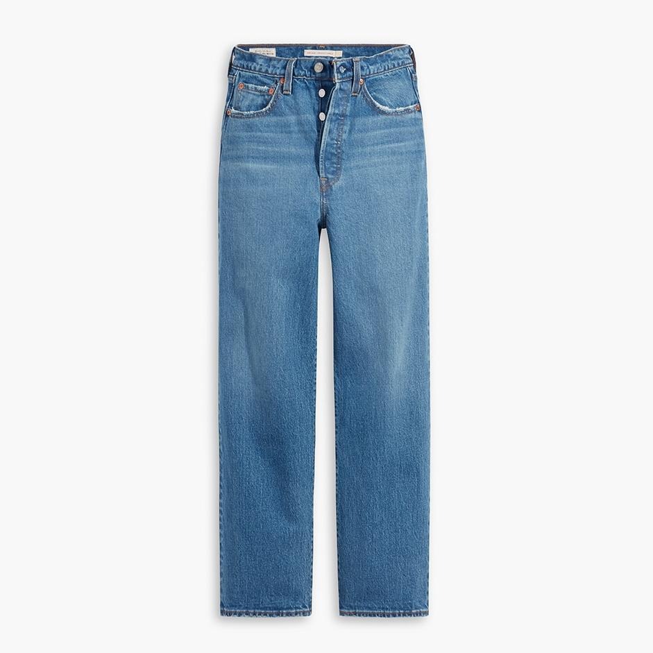 Levis 女款 Ribcage 復古排釦直筒牛仔褲 精工輕藍染刷白 72693-0099