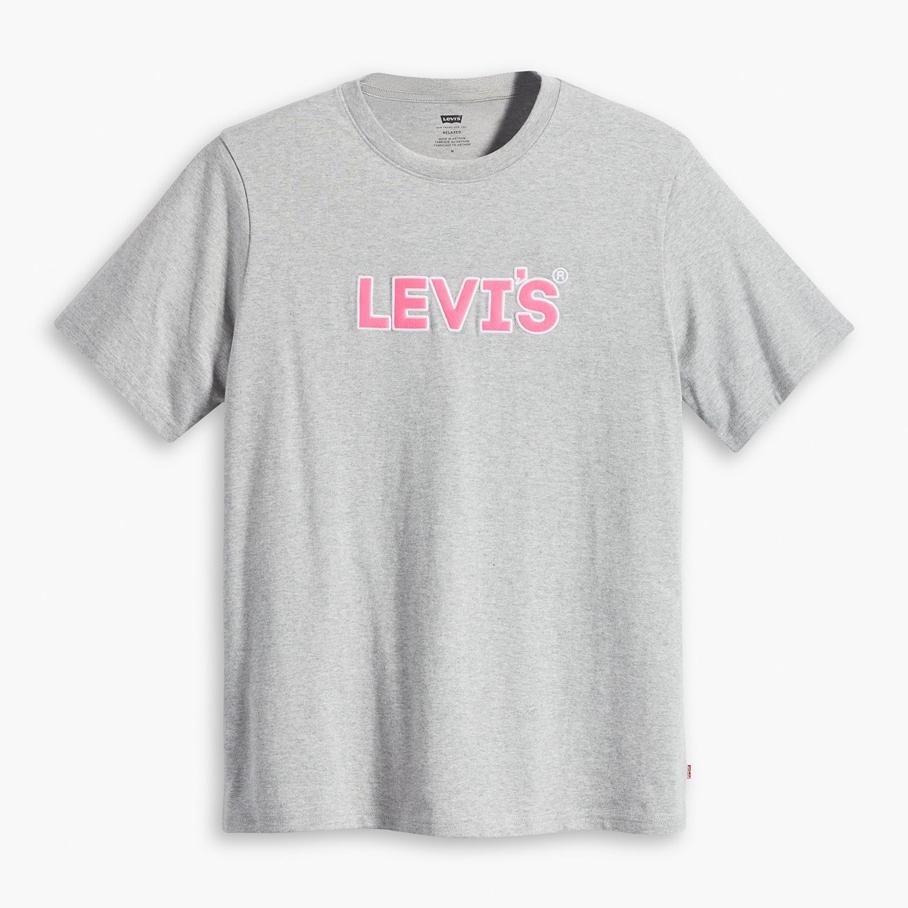 Levis 男款 短袖T恤 粉紅布章Logo 灰 16143-1072