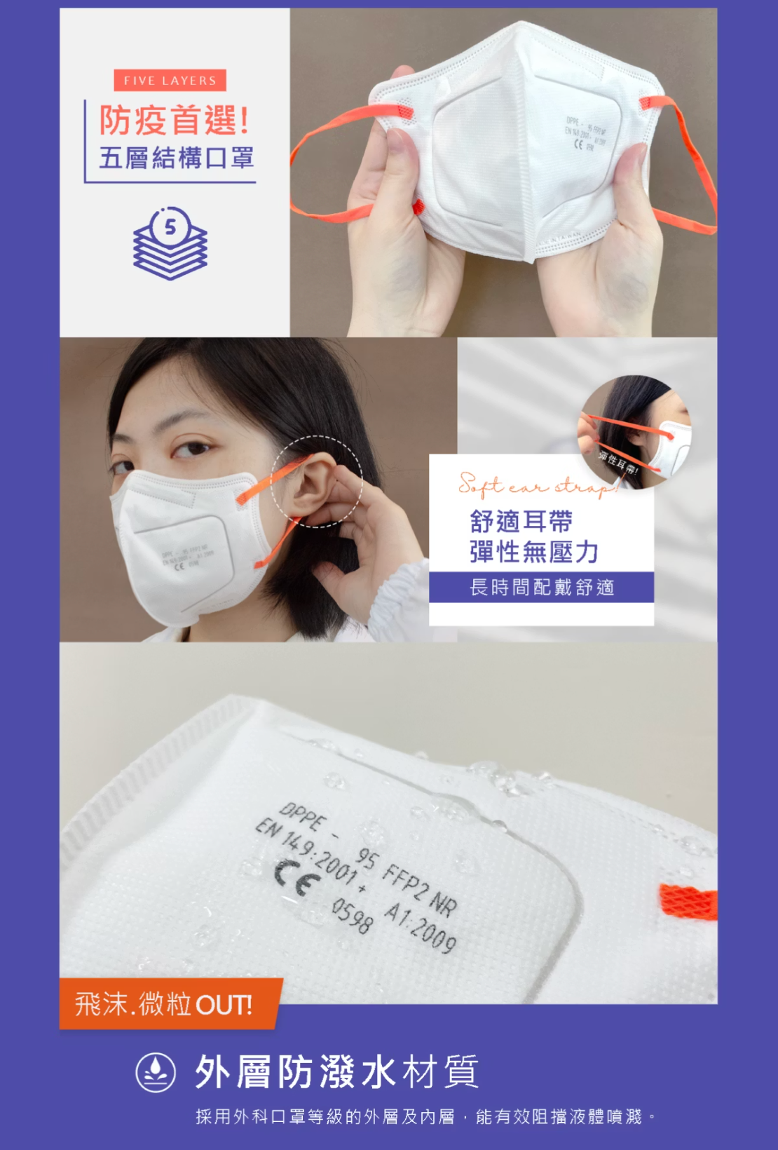 3. 內層親膚面料,彈性無痛耳帶,長時間配戴舒適