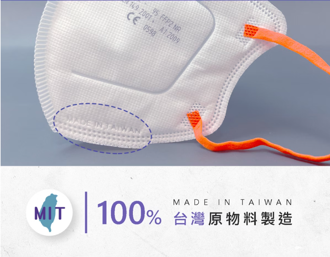 9. 經台灣紡織綜合研究所測試過後,防護效果達95%,次微米粒子防護效率採用鹽霧法,空氣交換壓力差符合CNS14755規範