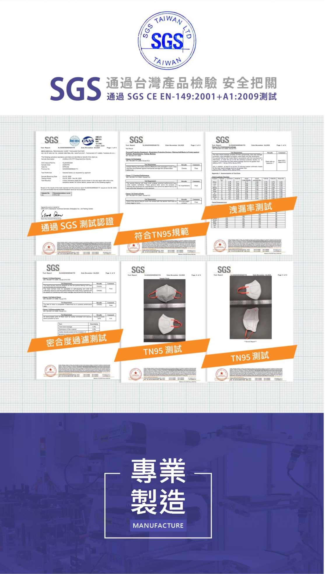 8. 通過SGS檢測,符合CE EN-149:2001+A1:2009 FFP2標準