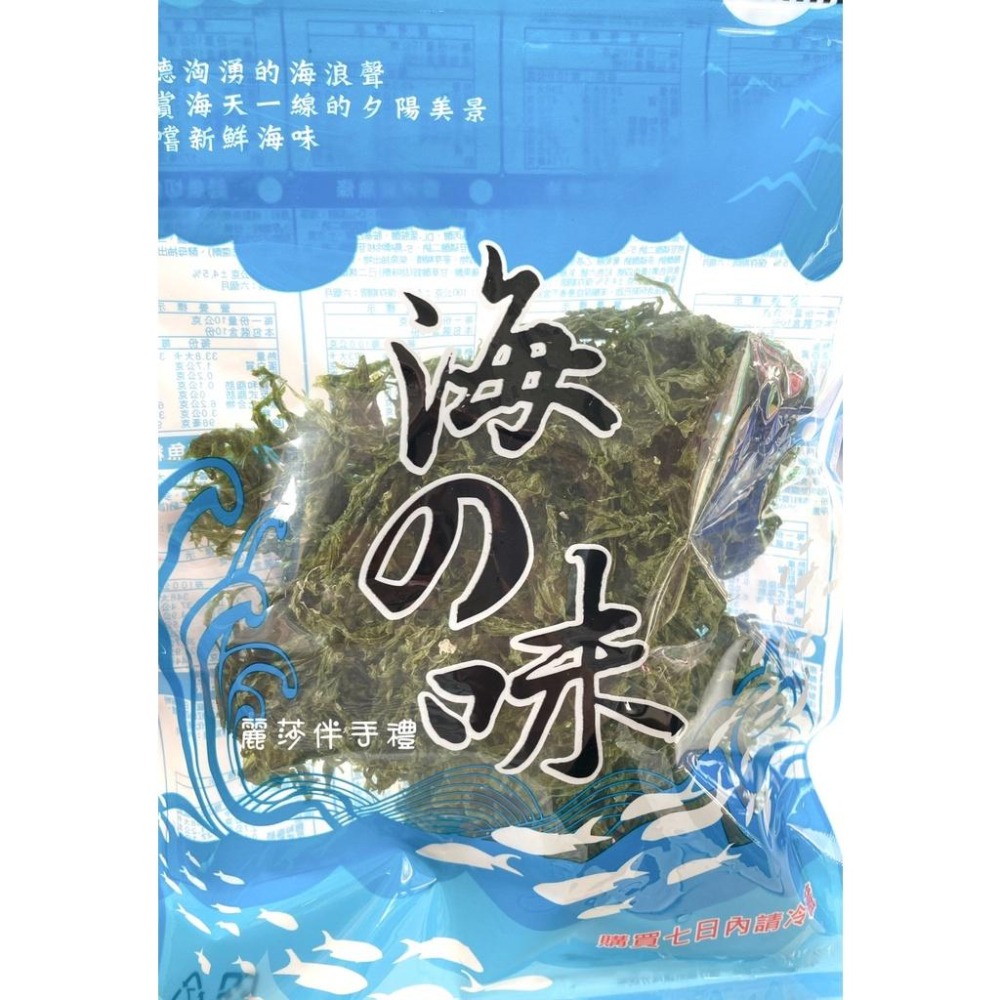 來自澎湖純淨大海海菜,隨著潮汐手工採集,以天然陽光日曬至全乾,散發淡淡的海苔香氣,充滿海洋氣息,完全乾燥給你實重更實在。