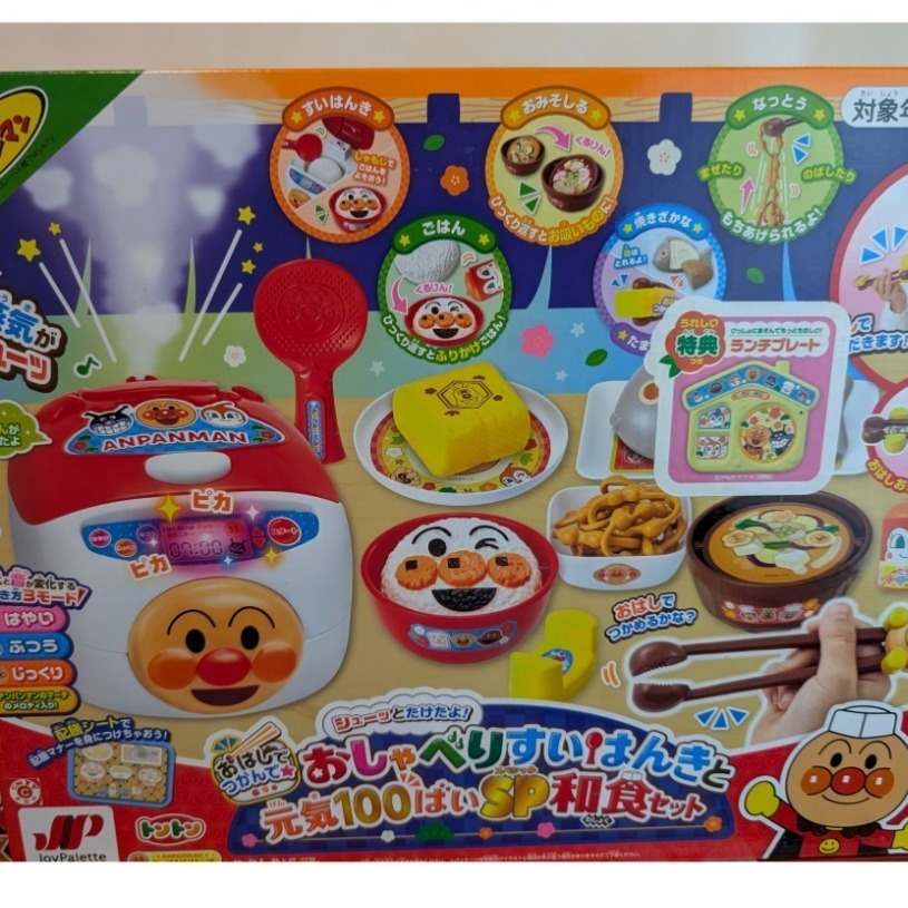 LED燈亮起,播放煮飯的聲音和“麵包超人進行曲”,蒸氣嘶嘶冒出。