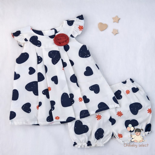 - 樣式繽紛的熱門泰式小女孩套裝(上衣+短褲附髮帶)