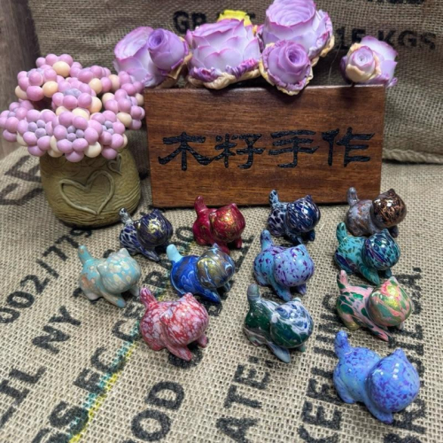 [木籽手作]噗噗5CM-A/流體貓/貓咪擺件/木頭貓/彩繪貓/大漆貓/台灣現貨