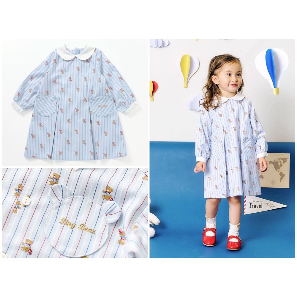 小熊條紋娃娃領連身裙洋裝/90
