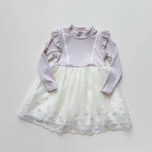 日單丁香紫刺繡花雕澎澎裙洋裝連身裙/100