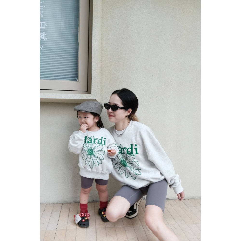 Mardi小雛菊綠色寬款版長袖上衣/90/100/110/120/M/L