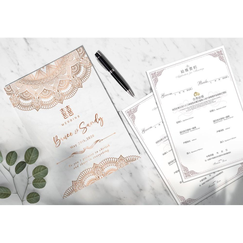 結婚證書夾 - 大理石紋 金色圖騰 (贈送二張公版書約 結婚登記用 結婚書約收藏夾)