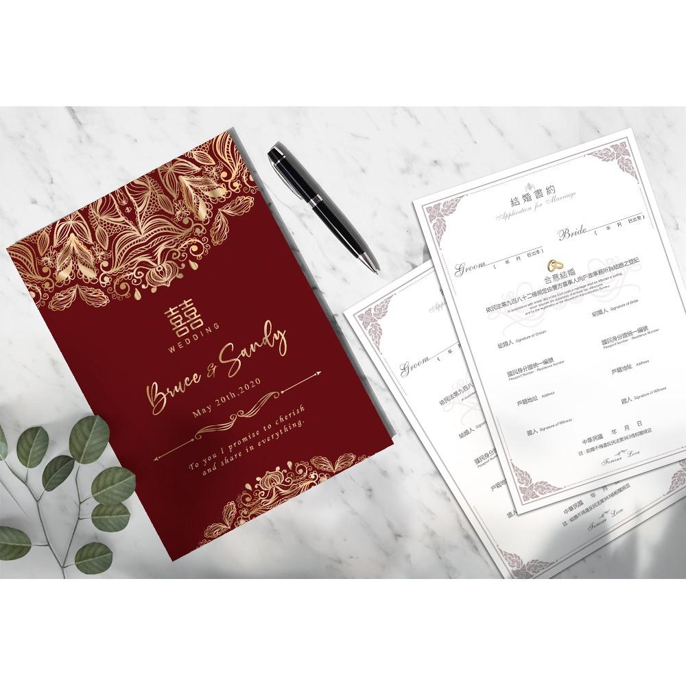 結婚證書夾 - 紅色圖騰證書夾 贈結婚書約 結婚登記專用 結婚證書夾 書約夾 結婚證書 結婚書