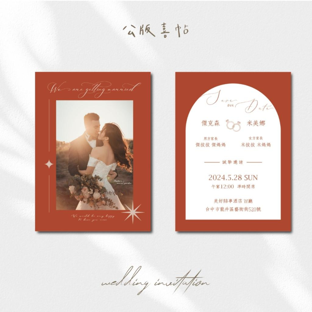 🧡韓式喜帖 ★頁面價格為喜帖單價,訂購數量以10為單位, 20張、30張、40 張、50張 ...以此類推 ★同款式&內容為一版,不同版 數量請分開累計 ★請先備好喜帖資料,確定婚禮時間 再做訂購 ★預設紙材使用星幻卡(285g),如需要其他紙材可另外詢問 👉製作流程: ✦流程:挑選款式 ➔ 下單並完成付款 ➔ 傳資料 ➔ 排版 ➔ 校稿 ➔ 沒問題後再印刷 ♡ ★下單後請提供以下資料 1.新郎/新娘名字 2.男方/女方家長名字 3.結婚日期/宴客時間/星期 4.宴客地點(婚宴餐廳名稱/地址) 5.版面與字體編號(可以選擇範例圖片版面,或者版面A-L擇1;字體如有指定也請備註編號) 6.如選擇的款式有照片,照片請另傳至信箱(聊聊詢問提供信箱位置) 7.如選擇套組,請選擇信封顏色&封口貼編號 👉訂購方式:請依需求選擇對應數量與項目作下單 例如:需要數量70張,請選擇項目[ 70張(單價) ] 數量輸入 70  例如:需要數量100張,請選擇項目[ 100張(單價) ] 數量輸入 100  以此類推,系統會自動帶入總金額 A:單購-卡片尺寸:11.5x16cm (單張雙面) B:套組-卡片(11.5x16cm)+信封&封口貼(套組含卡片+250g厚磅珠光信封(17.6 x12.6 cm)三款顏色可選,和3.5cm信封圓貼) 👉紙卡材質:(如未指定,將以星幻卡印刷) ①星幻紙卡:紙材非純白色 底色顯淡黃色光澤 印刷成品帶珠光效果 ②瑞典一級卡:一般的紙卡.但比一般紙材稍微再厚一些些 ③象牙卡:紙張平滑且紮實,色彩沈穩,印刷色彩飽和度低 ④雅紋紙:表面帶有細小的水波橫紋,質感雅緻,觸感溫柔適中 ⑤細紋紙:紙張有不規則細沙狀的壓紋,觸感特殊 📢備註: 1.每張的所有圖文皆需相同,如不同內容數量請分開累計。 2.建議您確認印刷張數,並加上備用張數後再下單,若未來追加,數量重新累計,以另一筆訂單計算。 3.定稿排印後,無法接受臨時取消或訂單與內容修改。 4.內容校對再煩請確實校對無誤,若確認過後送印才發現資訊錯誤或錯字,由買家負擔重印的費用。 5.客製商品不適用七天鑑賞期,商品送印刷後,無法取消或退貨。 ⚠️關於色差 螢幕色彩以及印刷色彩的色域並不相同,故會顯現不同的色彩。簡單來說印刷色彩顏色偏暗,油墨印不出一些特別明亮色彩,印刷也會因會紙張的不同而影響顏色。故收到印刷品與螢幕上所看到的圖稿會有所色差皆為正常的哦。 ★螢幕色彩為RGB→透過發光的螢幕色彩都比較鮮豔明亮 ★印刷則為CMYK→印刷成品會比螢幕色彩彩度偏暗一些哦! 印刷品輸出之色差值,無法以客戶之螢幕為基準。因不同紙材、每一批墨水跟印製時間,皆會影響圖型整體色彩,如對於顏色有精準的要求 請勿下單!  ⛔此商品屬 「依消費者要求所為之客製化給付」,不適用7天鑑賞期法規。 ⛔客製商品~恕不提供貨到付款服務 #單張喜帖 #明信片單張喜帖 #簡約風格喜帖 #大理石喜帖 #紅色系喜帖 #明信片式喜帖 #創意喜帖 #喜帖 #婚卡 #請柬 #結婚請柬