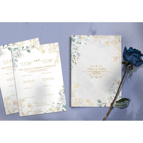 商品:精裝裱版結婚證書夾  尺寸:29.2x20.3公分 材質:(封面) 彩色印刷 書約符合戶政事務所的規定,書約無印新人名字...等個人資訊,需自行手寫資料上去及簽名喔 說明:封面可印製新人名、婚期    下單後,請提供    1.新人名字( 如不印名字也可以更換其他文字)    2.登記日/婚期/紀念 (不確定日期建議不印) 證書夾封面會提供校稿確認,如內容有任何問題請於印製前提出,如確認定稿後無法幫您重印或修改~請知悉! 製作流程: 蝦皮下單並提供資料→排稿&確認(依校稿時間而定)→定稿→印刷(7天)→寄出 ★如有不清楚的地方歡迎用聊聊詢問喔! ⛔此商品屬 「依消費者要求所為之客製化給付」,不適用7天鑑賞期法規。 ⛔客製商品~恕不提供貨到付款服務 ★螢幕顯示與印刷成品會產生色差。(電腦螢幕,因不同品牌、型號及個別色彩設定參數,也會造成顏色觀看上的不同。 ★證書夾表面皆有上膜處理,霧膜會讓印刷品表面有霧化效果,顏色也會較沉哦。 👉如要加購證書夾周邊(雙側緞帶、書約、婚紗照等)請這邊加購 https://shopee.tw/product/149788736/6833099092/ https://s-cf-tw.shopeesz.com/file/tw-11134208-7qul5-lhyk3ml1hz809b https://s-cf-tw.shopeesz.com/file/tw-11134208-7quky-lhyk3ml1jdsgb4 ★辦理結婚登記時請攜帶以下文件: 1.結婚書約 2.雙方之戶口名簿 3.雙方之國民身分證/若為外籍人士需帶護照 4.新式身分證規格照片各1張 5.換領國民身分證各50元規費、戶口名簿各30元規費 ★注意: 1.結婚當事人兩位需要在登記當日親自到戶政事務所辦理,但結婚書約上簽名的兩位證人不需要到現場。 2.可以向任一戶政事務所辦理結婚登記。若需同時辦理遷入戶籍,則應選擇遷入地戶政事務所辦理。 #婚禮小物 #婚禮週邊 #簽名綢 #貼紙 #結婚書夾 #結婚證書 #結婚書約 #登記專用 #婚禮 #婚約